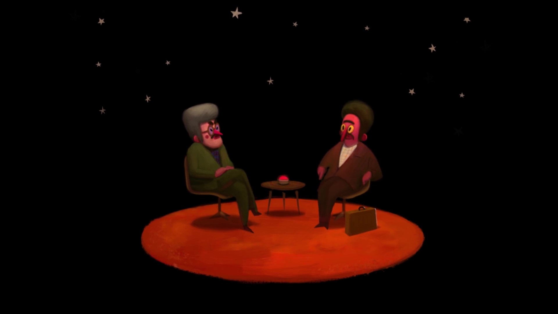 A surreal talk show ruled by an eccentric host, mixing vintage oddities and puppet-inspired humor.